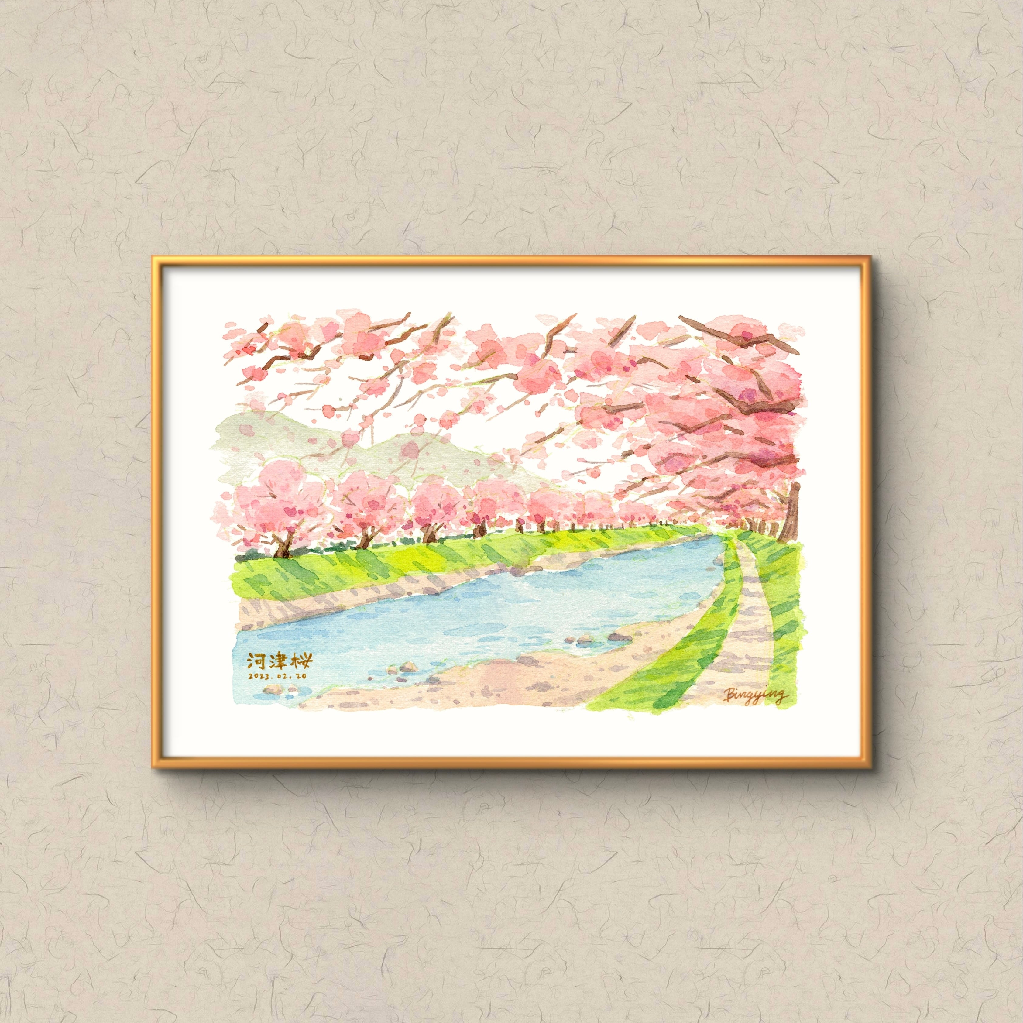 本物の水彩紙に印刷したアートポスター|伊豆の河津桜【A5】/ Art Poster Printed on Real Watercolor Paper: Sakura in Izu, Japan [A5]