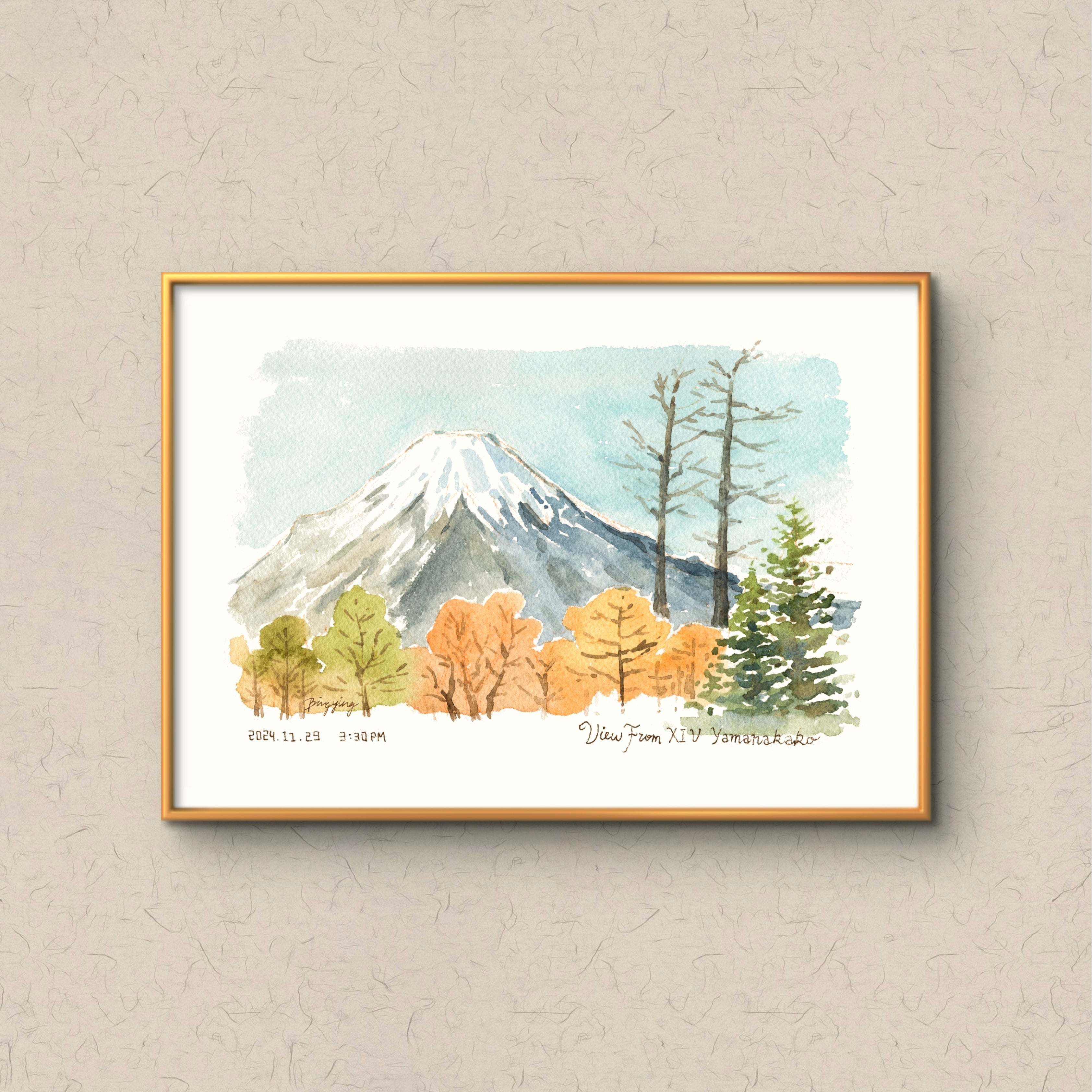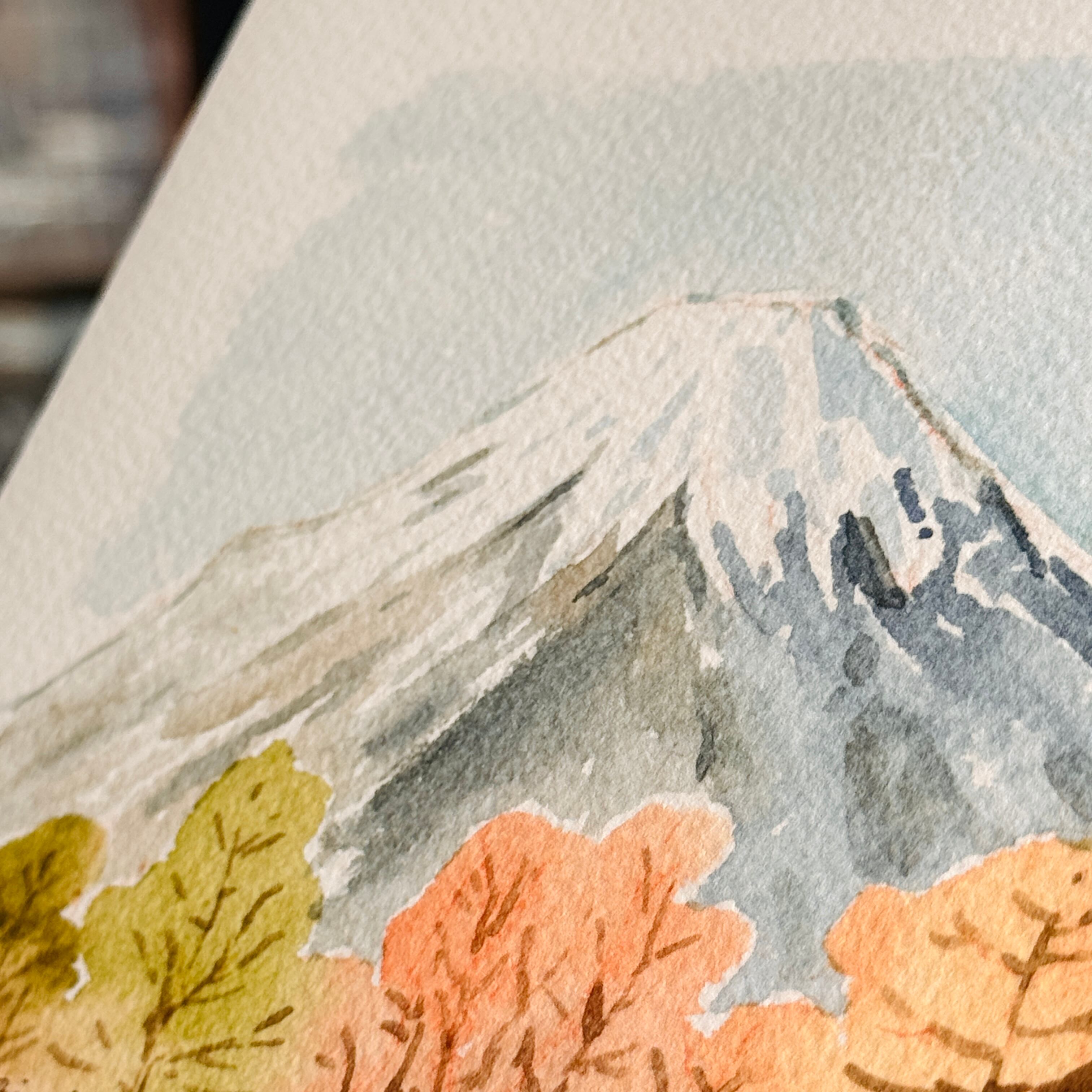 本物の水彩紙に印刷したアートポスター|秋の富士山【A5】/ Art Poster Printed on Real Watercolor Paper: Mt. Fuji in Autumn [A5]