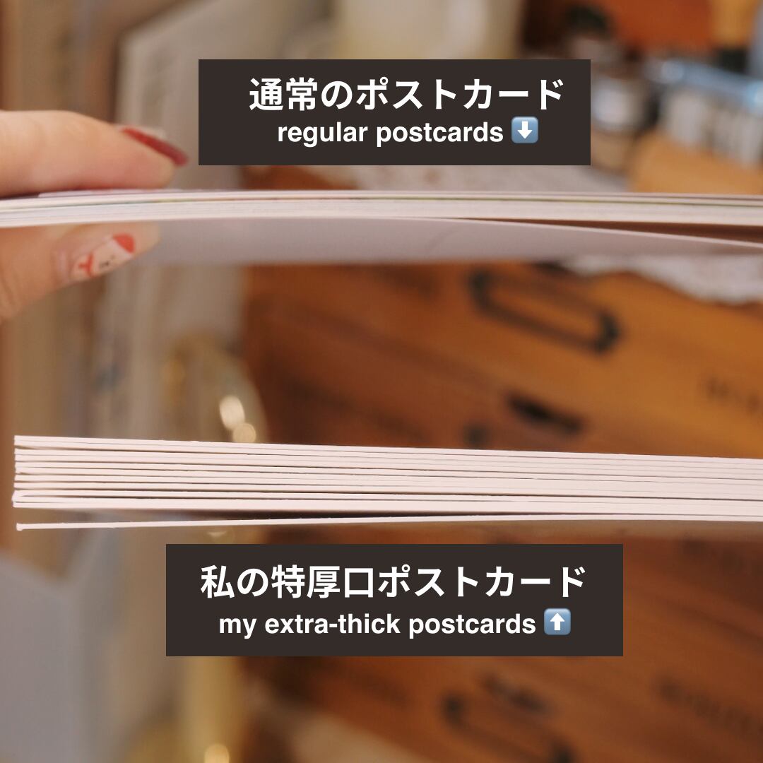 I use a super thick, ultra-premium watercolor-textured specialty paper that's about twice as thick as regular postcards and feels like a real watercolor painting.