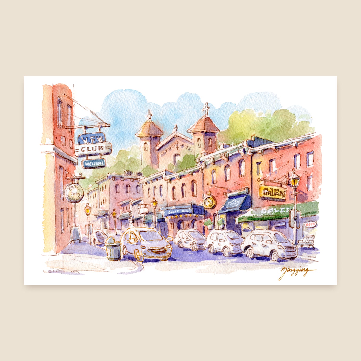 I use a super thick, ultra-premium watercolor-textured specialty paper that's about twice as thick as regular postcards and feels like a real watercolor painting.